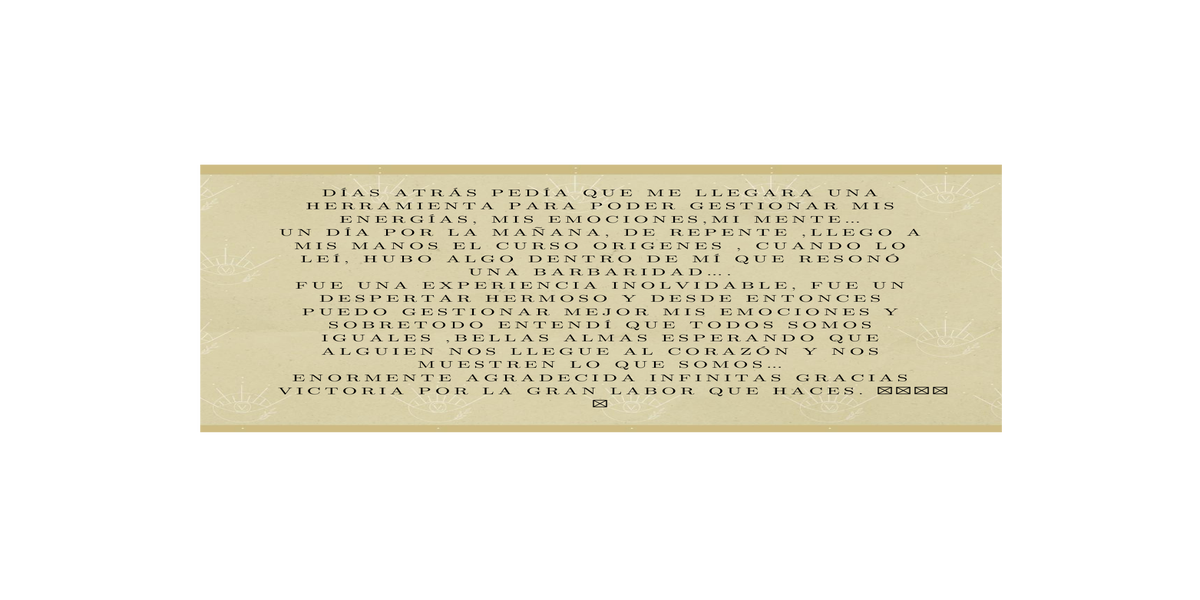 Orígenes es volver al origen de ti, limpiar y tomar consciencia de quién eres, qué has venido hacer, sanar y conectarte desde otro lugar para percibir la vida con todos los sentidos como nunca antes lo has hecho.